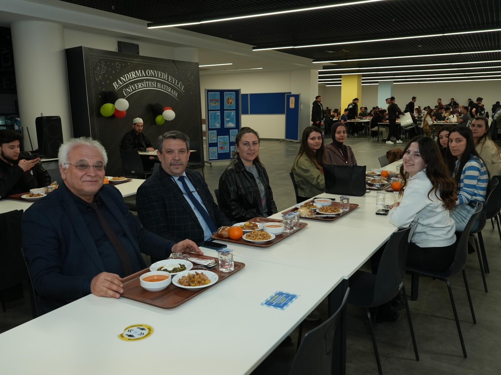 Üniversitemiz Öğrenci Yemekhanesi’nde düzenlenen programa; Rektörümüz Prof. Dr. İsmail Boz’un kıymetli eşi Sibel Boz, Rektör Yardımcılarımız Prof. Dr. Alpaslan Serel, Prof. Dr. Ebru Kaya Mutlu ve Prof. Dr. Mehmet Emin Erçakar, İktisadi ve İdari Bilimler Fakültesi Dekanımız Prof. Dr. Serap Palaz, Denizcilik Fakültesi Dekanımız Prof. Dr. Celil Aydın, Mühendislik ve Doğa Bilimleri Fakültesi Dekanımız Prof. Dr. Abdullah Yeşil, Ömer Seyfettin Uygulamalı Bilimler Fakültesi Dekanımız Prof. Dr. Tarhan Okan, Sağlık Bilimleri Fakültesi Dekanımız Prof. Dr. Hüseyin Eseceli, Tıp Fakültesi Dekanımız Prof. Dr. Hayrettin Tekümit, Sanat, Tasarım ve Mimarlık Fakültesi Dekanımız Prof. Dr. Eylem Güzel, Spor Bilimleri Fakültesi Dekanımız Prof. Dr. Yağmur Akkoyunlu, İlahiyat Fakültesi Dekanımız Prof. Dr. Abdullah Hikmet Atan, İletişim Fakültesi Dekanımız Prof. Dr. Hatice Aydın, Sağlık, Kültür ve Spor Daire Başkanımız Mehmet Karatepe, akademik ve idari personelimiz ile öğrencilerimiz katılım sağladı.