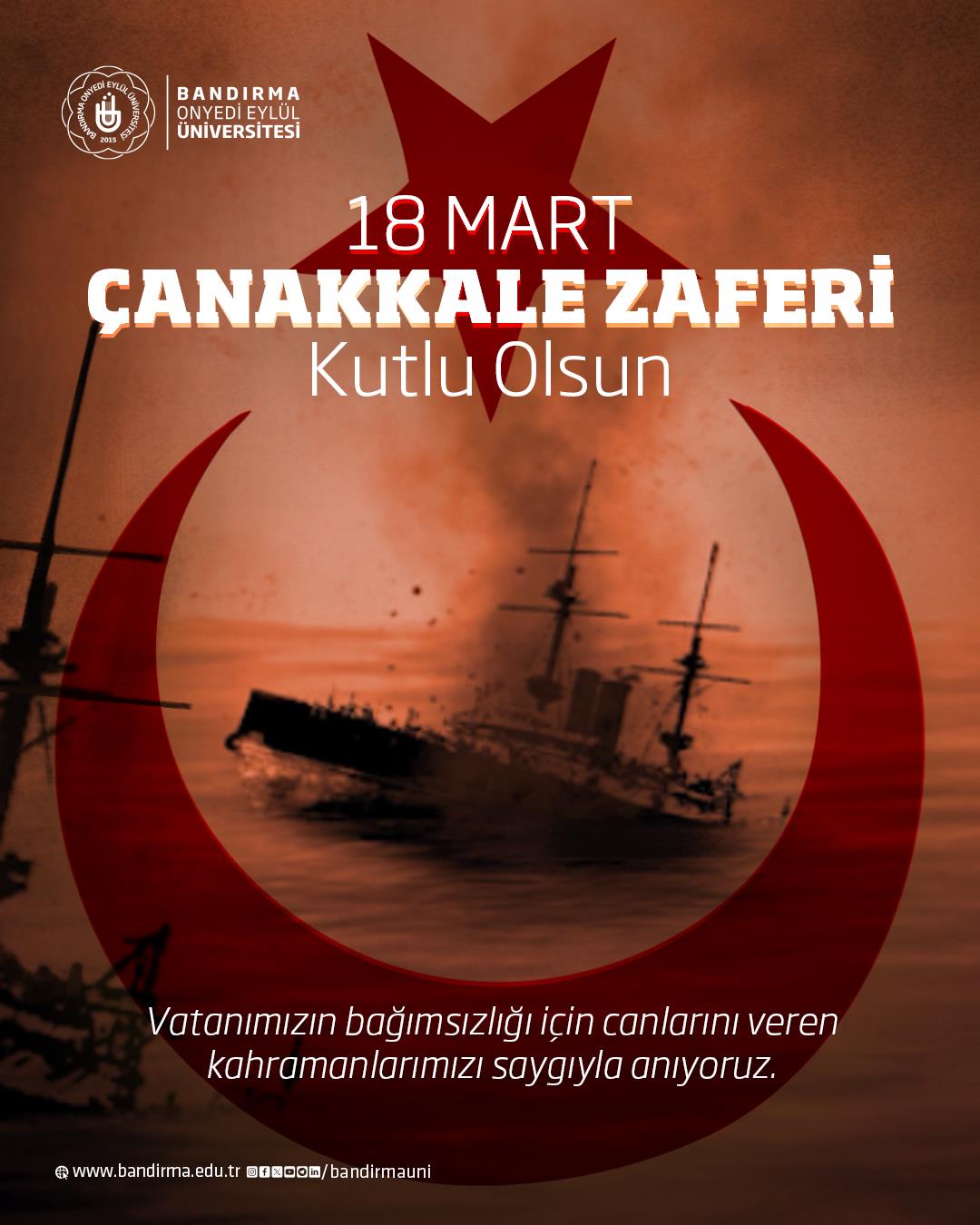 Bandırma Onyedi Eylül Üniversitesi olarak; ecdadımızdan bizlere miras kalan bu kutlu ruhu yaşatmayı, gençlerimizi milli ve manevi değerlerine bağlı, tarih bilinci yüksek bireyler olarak yetiştirmeyi en önemli görevlerimizden biri olarak görmekteyiz.