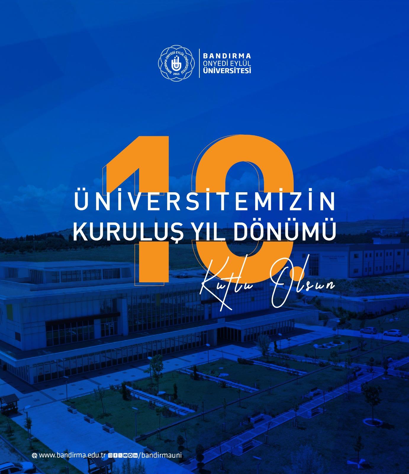 Kurulduğumuz günden itibaren bize destek olan tüm paydaşlarımıza teşekkürlerimizi sunuyor; hep birlikte Bandırma Onyedi Eylül Üniversitesi’ni, ülkemizin saygın üniversitelerinden biri yapmak için tüm gücümüzle çaba göstereceğimize olan inancımızı yineleyerek, Üniversitemizin 10. kuruluş yıldönümünü gönülden kutluyorum.