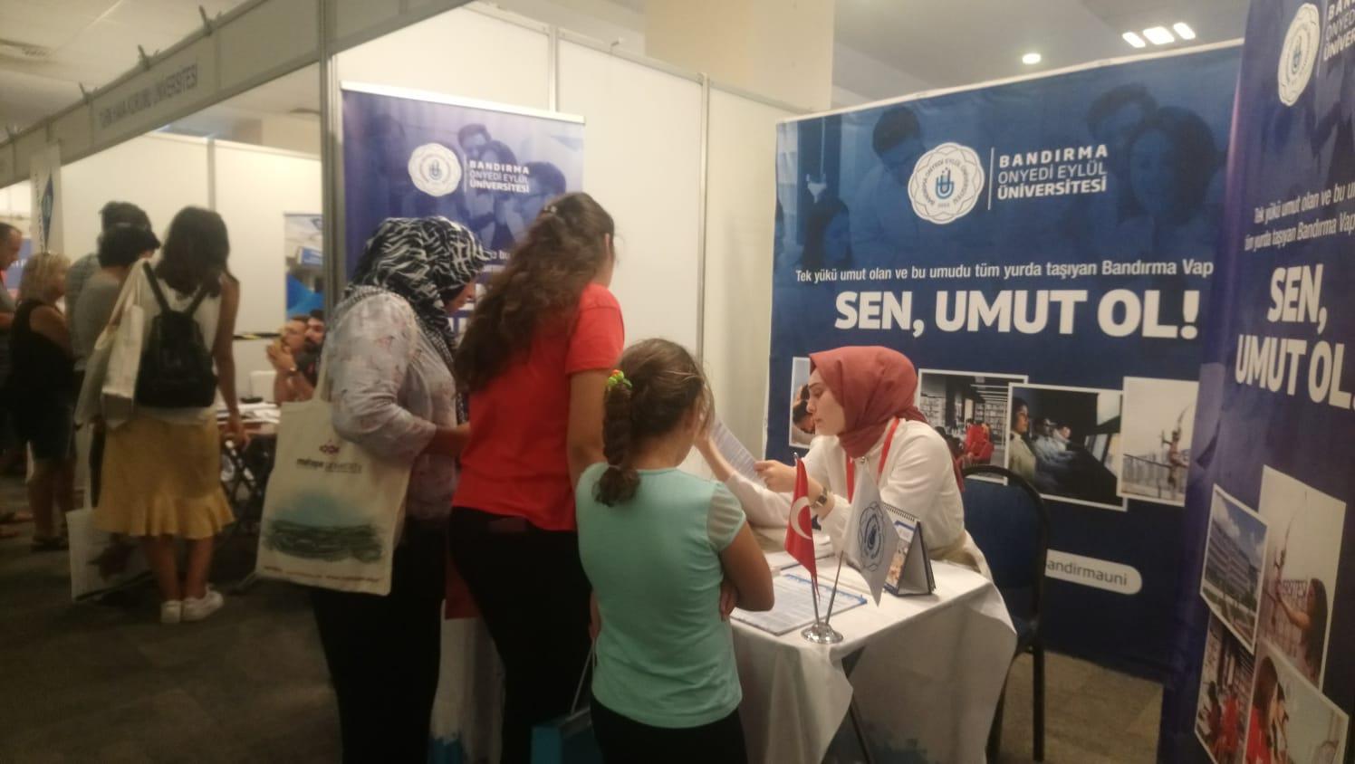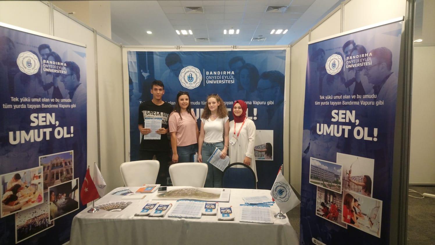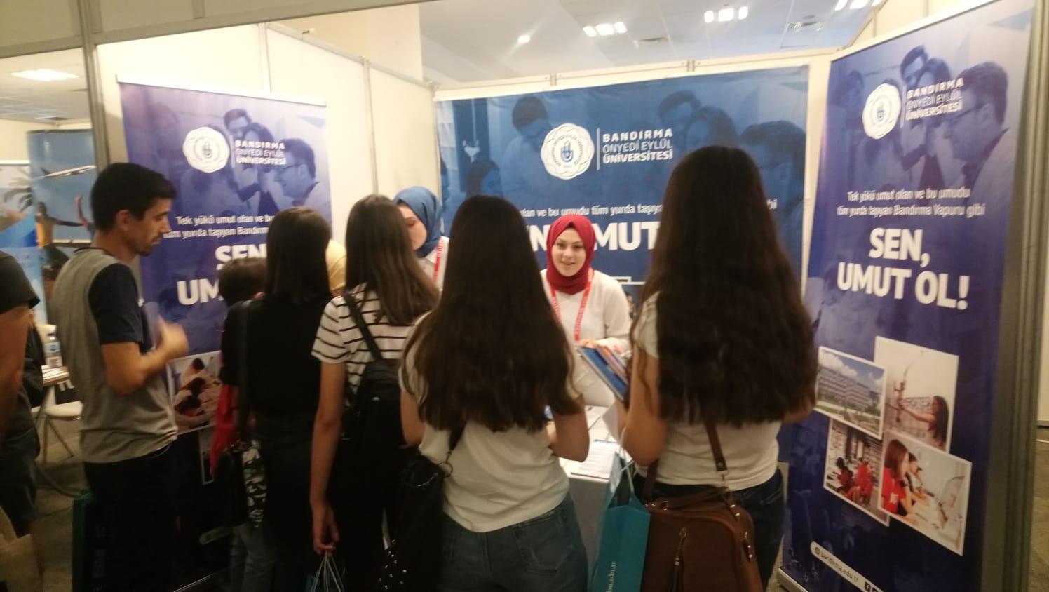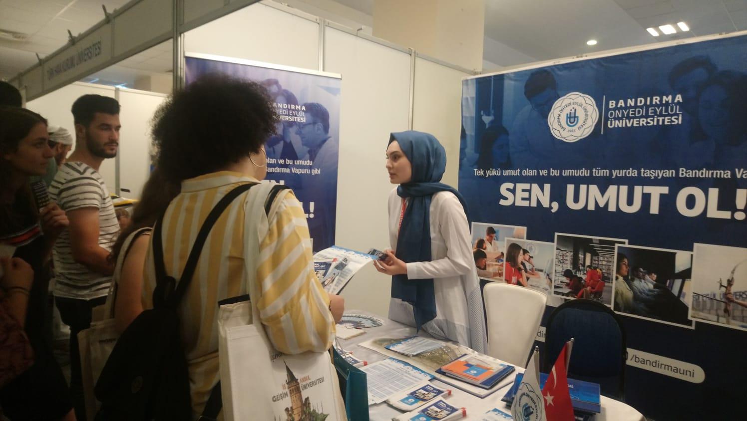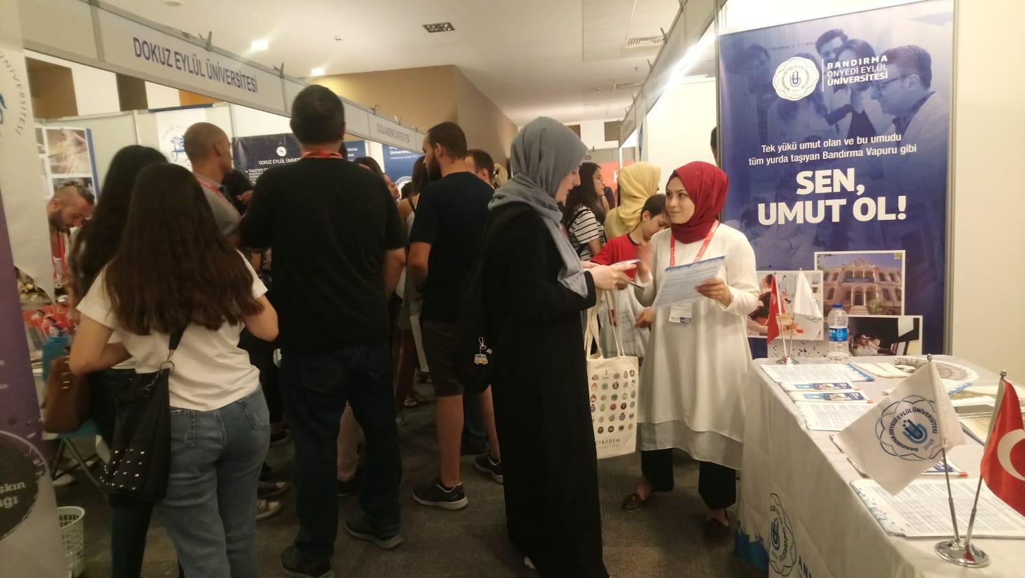 Üniversitemiz tercih ve tanıtım çalışmaları kapsamında İzmir Tepekule Kongre ve Sergi Merkezi’nde düzenlenen Üniversite Tercih Fuarı’na katıldı. 26-27 Temmuz tarihlerinde düzenlenen fuarda 60’a yakın üniversite stant açtı. Fuar, üniversite tercihi yapacak aday öğrenciler ve aileleri tarafından yoğun ilgi gördü.