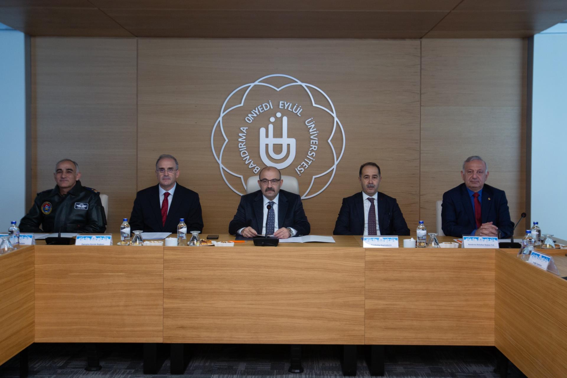 Üniversitemiz ev sahipliğinde Sezai Karakoç Toplantı Salonu’nda gerçekleştirilen toplantıya, Balıkesir Valisi İsmail Ustaoğlu, Bandırma Kaymakamı Engin Aksakal, 6. Ana Jet Üs ve Garnizon Komutanı Hava Pilot Tuğgeneral Esat Çetin, Bandırma Belediye Başkan Yardımcısı Niyazi Yeloğlu, Bandırma Cumhuriyet Başsavcısı Cüneyt Demirdaş, il, ilçe protokolü ve Üniversitemizin paydaşları olan danışma kurulu üyeleri katıldı. Toplantıda Rektör Yardımcılarımız Prof. Dr. Alpaslan Serel, Prof. Dr. Ebru Kaya Mutlu ve Prof. Dr. Mehmet Emin Erçakar da hazır bulundu.