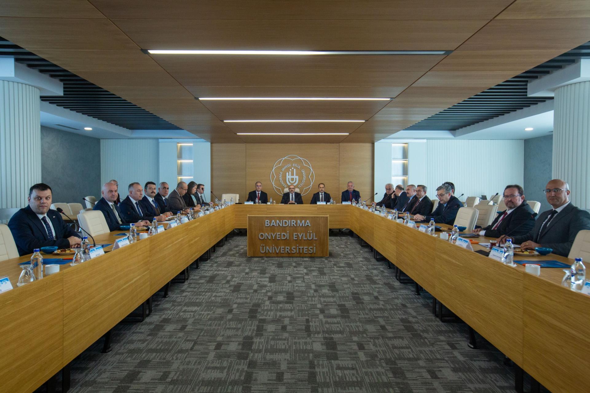 Balıkesir Valisi İsmail Ustaoğlu’nun konuşmasıyla başlayan toplantıda Vali Ustaoğlu, “Şehrimizin en önemli dinamiklerinden biri olan Bandırma Onyedi Eylül Üniversitemizde, tüm paydaşlarımızla bir araya gelmemiz bize büyük güç katmaktadır" ifadelerini kullandı. Toplantıda Rektörümüz Prof. Dr. İsmail Boz, Üniversitemizin kuruluşundan bu yana kaydettiği gelişmeleri ve geleceğe yönelik planlanan projeleri içeren detaylı bir sunum yaptı.