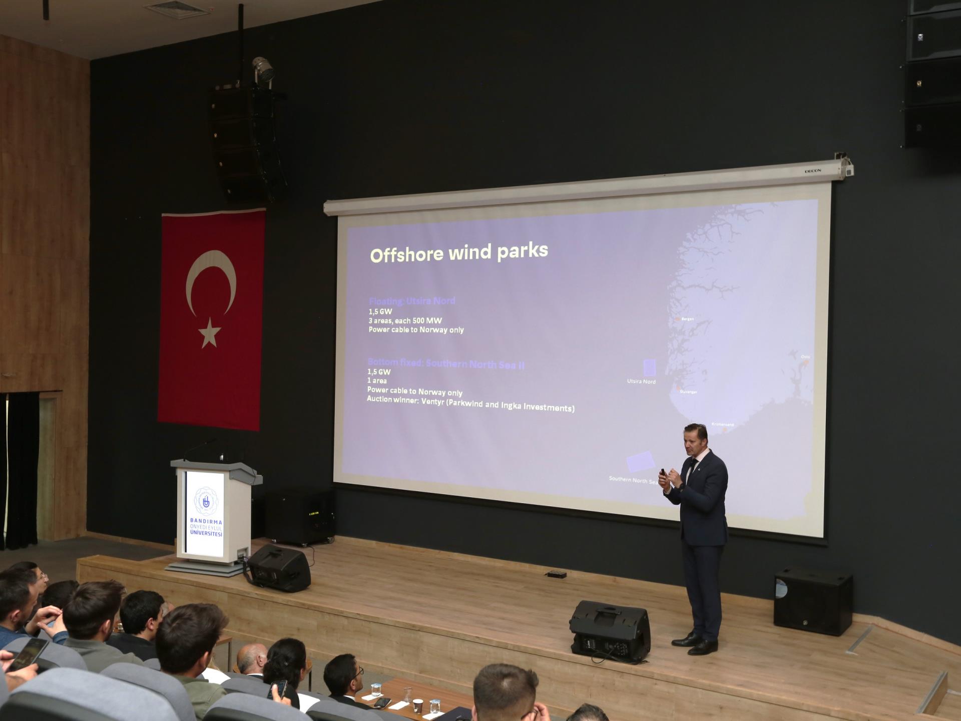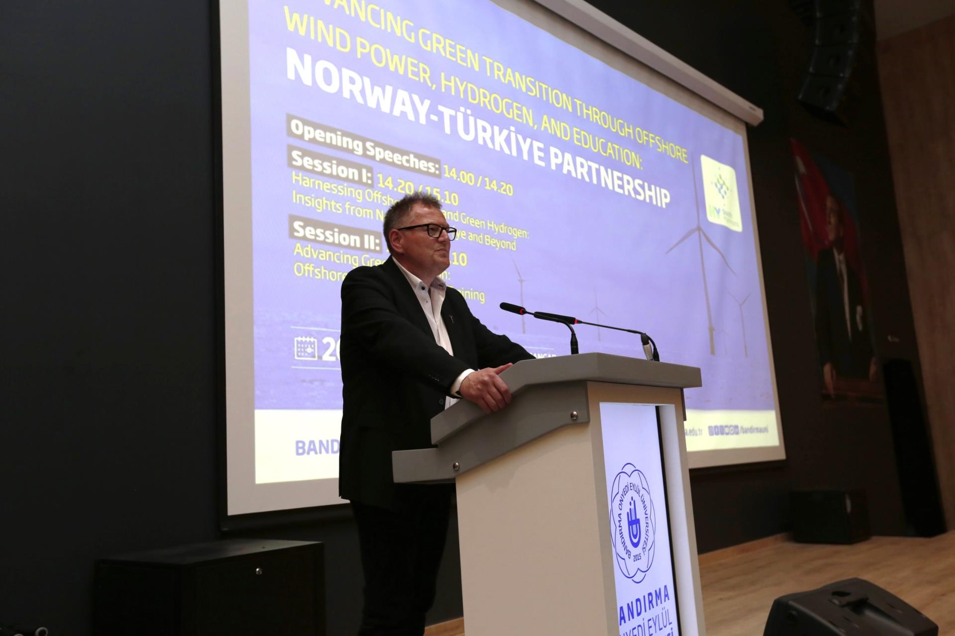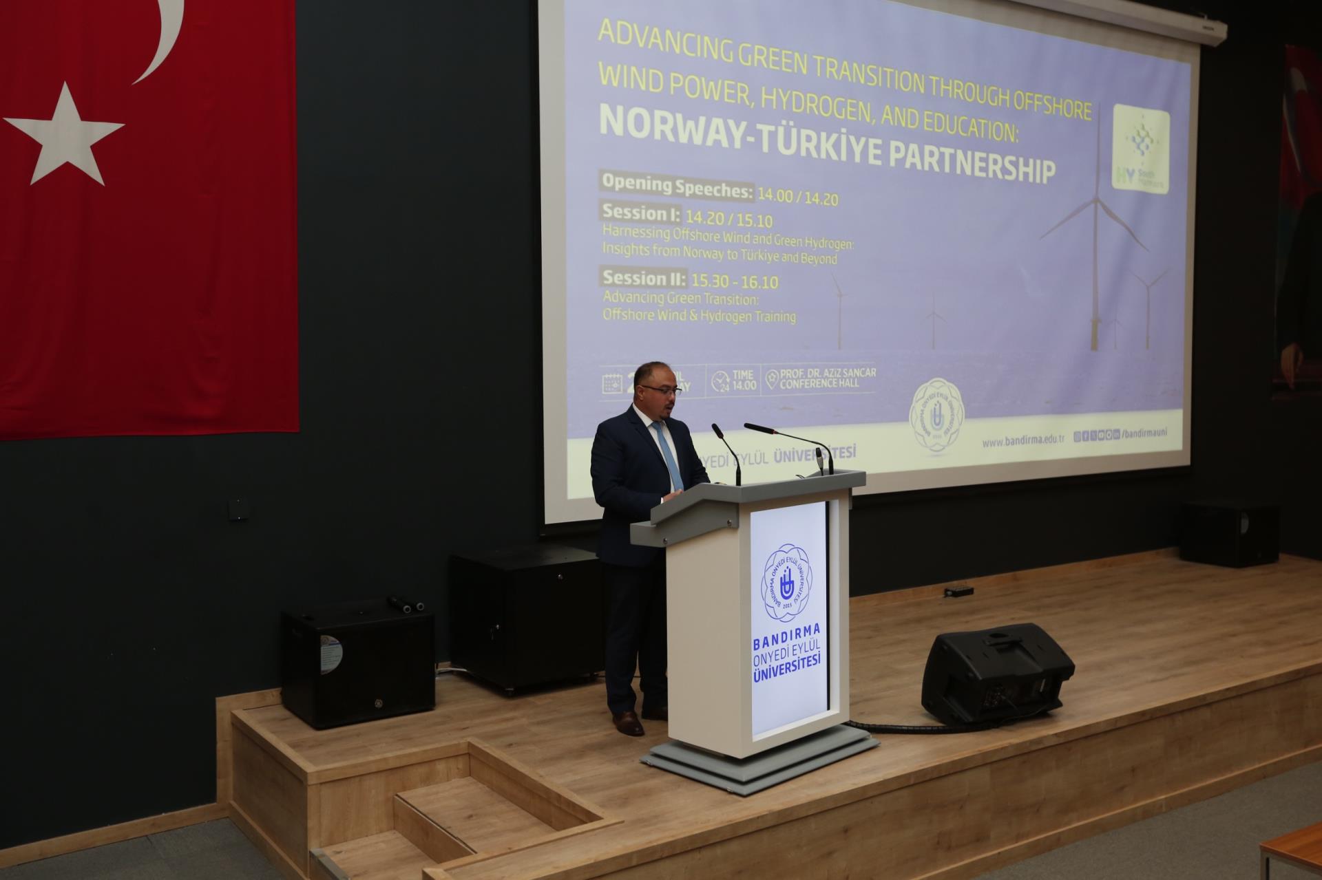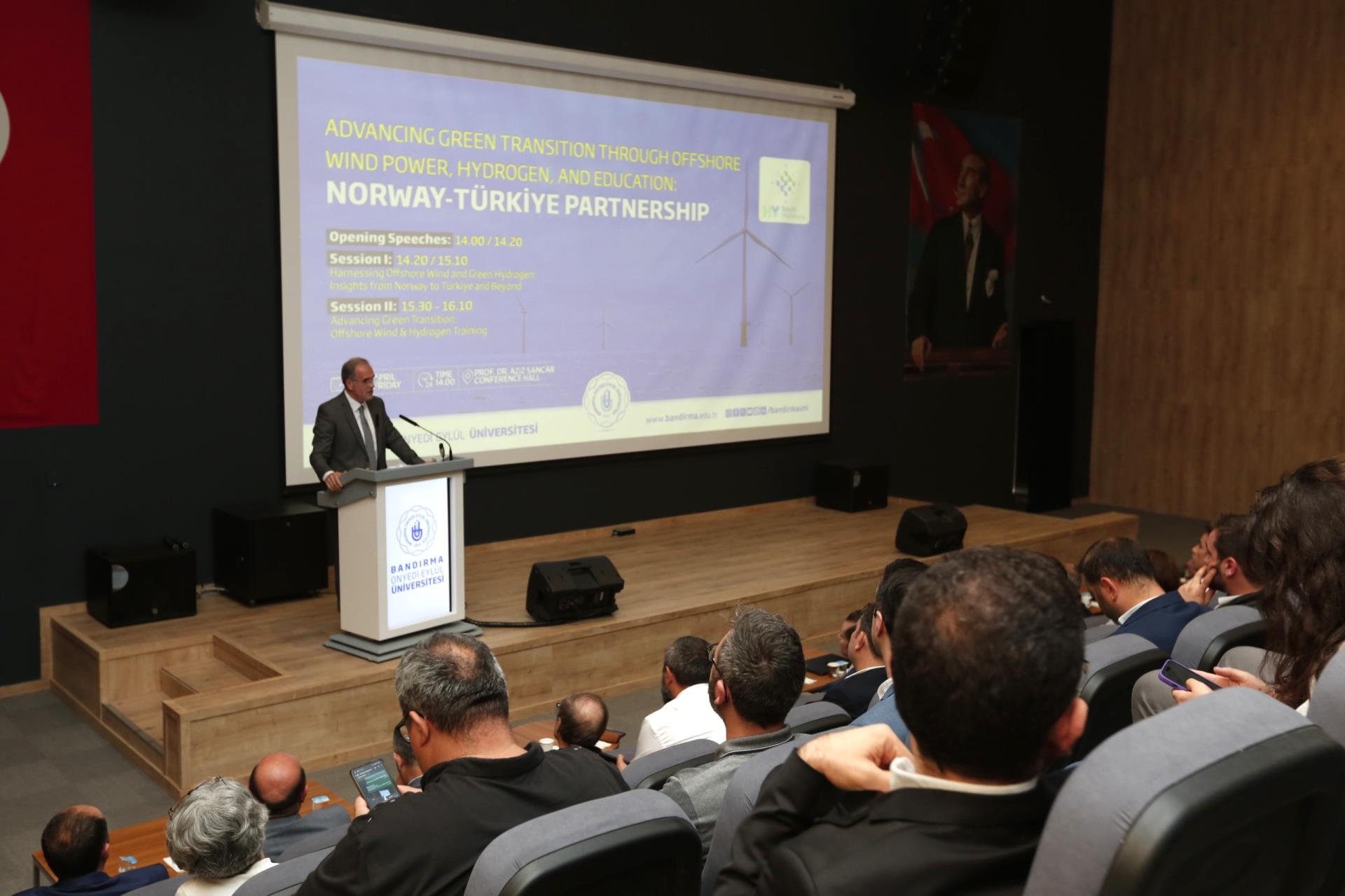 Üniversitemizin ulusal ve uluslararası paydaşlarıyla iş birliği vizyonu çerçevesinde “Denizüstü Rüzgar Enerjisi, Hidrojen ve Eğitim Yoluyla Yeşil Dönüşümün Geliştirilmesi: Norveç-Türkiye Ortaklığı” konulu panel düzenlendi.