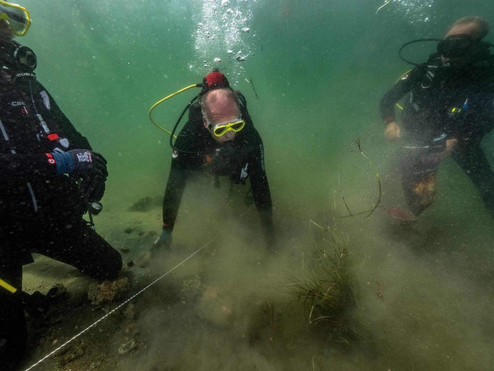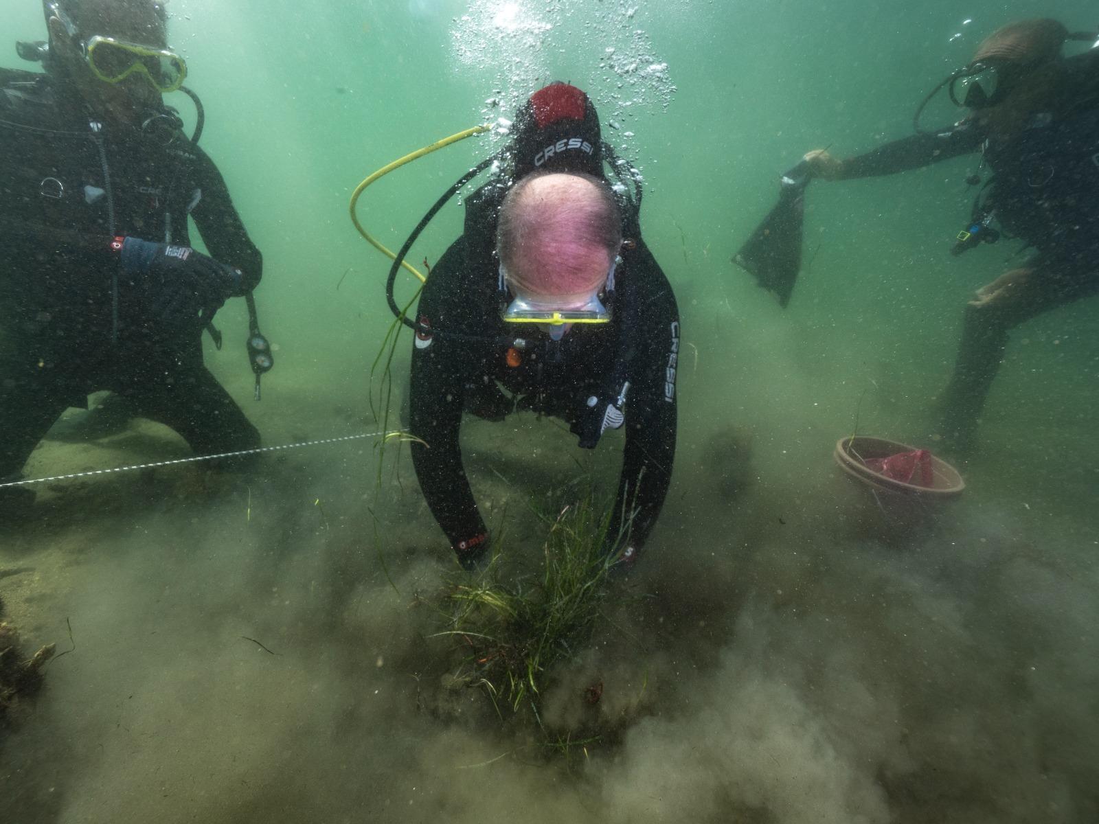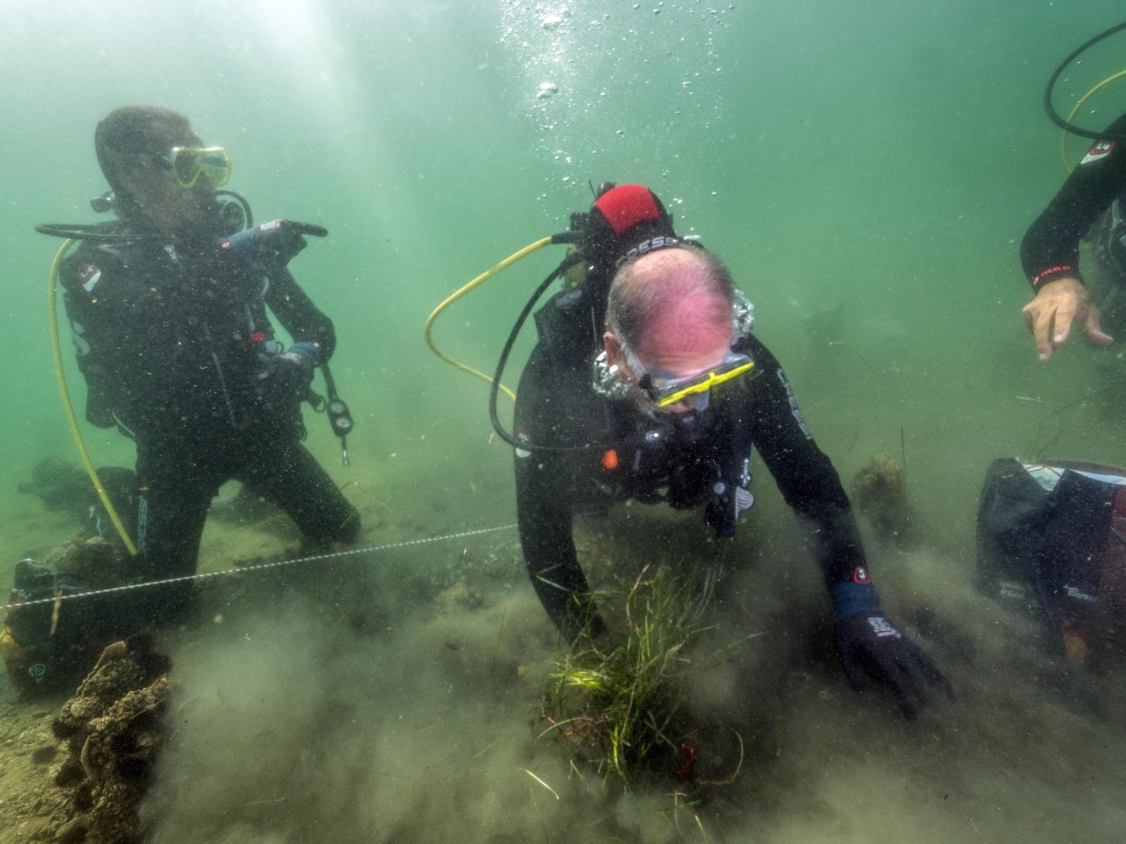 Erdek Körfezi’nde bilimsel kriterlere göre belirlenen donör alanlardan sedimentiyle birlikte alınan deniz çayırları, uygun koşullarda Üniversitemiz Hüseyin Avni Kocaman Deniz Bilim Merkezi’ne taşındı. Pinaların yoğun olarak dağılım gösterdiği kıyısal alanda belirlenen transplantasyon lokasyonunu ekim için hazırlandıktan sonra Prof. Dr. Mustafa Sarı, Doç. Dr. Uğur Karadurmuş, Öğr. Gör. Alparslan Kulakaç ve Eğitmen Dalgıç Osman Benli tarafından ekim yapıldı. Yapılan dalış ile gerçekleştirilen ekime, Rektörümüz Prof. Dr. İsmail Boz ve Çevre Şehircilik ve İklim Değişikliği Bakanlığı Tabiat Varlıkları Koruma Genel Müdür Yardımcısı Dr. Beyhan Oktar da katıldı.