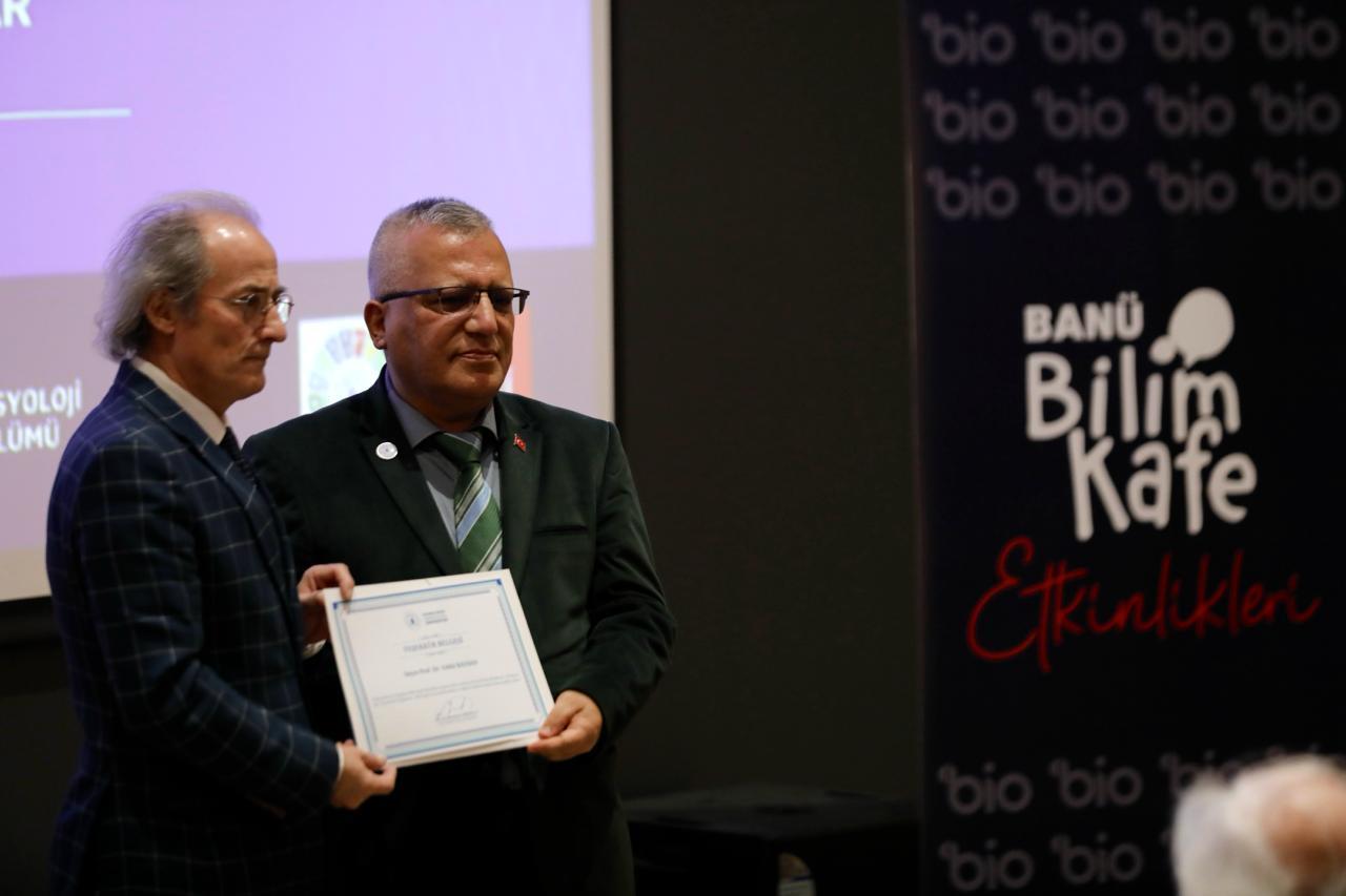 Konferans sonunda İnsan ve Toplum Bilimleri Fakültesi Dekanımız Prof. Dr. Zekai Mete tarafından Prof. Dr. Vehbi Bayhan’a teşekkür belgesi takdim edildi. Program, günün hatırası için çekilen toplu fotoğrafın ardından sona erdi.