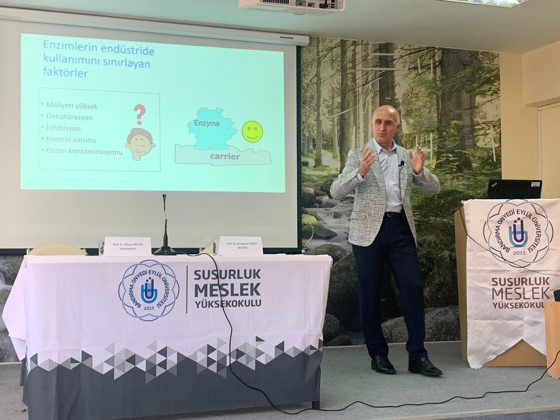 Susurluk Tarım ve Orman Meslek Yüksekokulu Konferans Salonu’nda gerçekleşen ve Balıkesir Üniversitesi Kimya Bölümü Öğretim Üyesi Prof. Dr. Oktay Arslan’ın davetli konuşmacı olduğu konferansa Susurluk Tarım ve Orman Meslek Yüksekokulu Müdürümüz Prof. Dr. Bünyamin Söğüt, akademik ve idari personelimiz ile öğrencilerimiz katılım gösterdi.