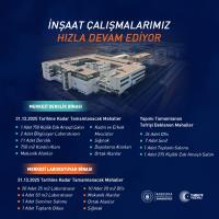 Üniversitemiz “Merkezi Derslik Binası’nda” yapımı tamamlanan ve tefrişi beklenen; 34 adet ofis, 7 adet sınıf ve 1adet 275 kişilik çok amaçlı salon bulunmaktadır. 1 adet 750 kişilik çok amaçlı salon, 2 adet bilgisayar laboratuvarı, toplamda 550 kişilik 11 adet derslik, 750 m2’lik kantin alanı, mekanik alanlar, kadın ve erkek mescitler, depolama alanları, sığınak ve ortak alanların ise 31.12.2025 tarihine kadar tamamlanması planlanmaktadır. İnşaat çalışmalarına kısa bir süre önce başlanan ve bünyesinde 24 adet laboratuvar, 1 adet seminer salonu, 1 adet toplantı odası, 10 adet ofis, mekanik alanlar, ortak alanlar, sığınak ve depolama alanları bulunan Merkezi Laboratuvar Binası’nın ise yine 31.12.2025 tarihine kadar tamamlanması planlanmaktadır.