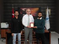 Ziyaret sonunda uluslararası misafir öğrencilerimiz, Rektörümüze teşekkür plaketi takdim etti.